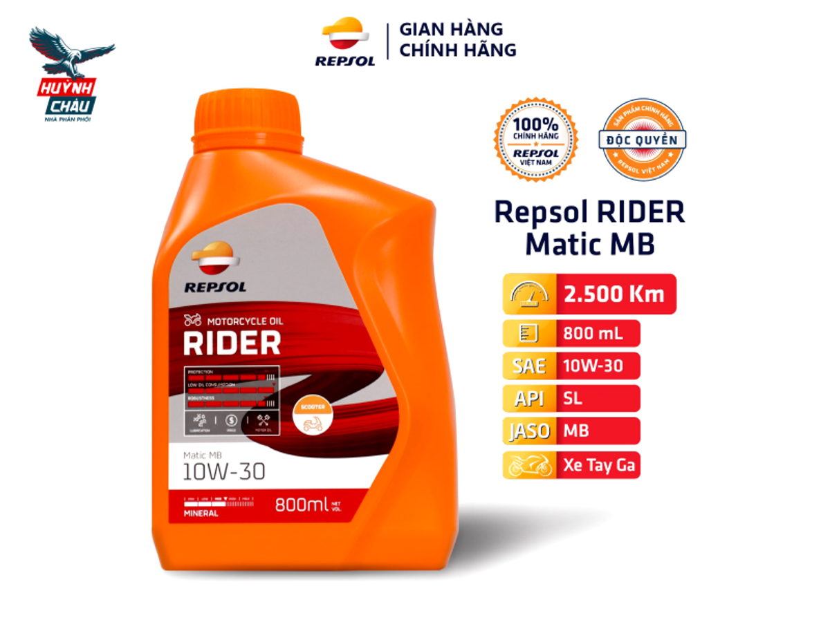 Repsol Rider is a premium lubricant line from the Repsol brand. The product is heavily invested in quality to ensure engines operate under optimal conditions. The Rider Matic MB 4T 10W30 line is specially designed for scooters. It is highly rated by many users for its maintenance capabilities and ability to enhance engine performance. To better understand this product, let's explore more information with Huynh Chau in the article below!